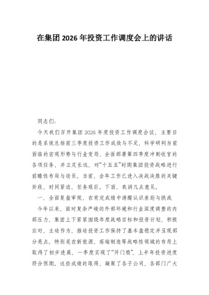 在集团2026年投资工作调度会上的讲话
