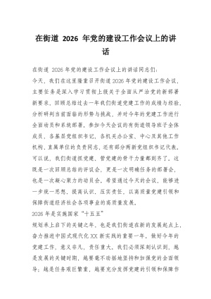 在街道 2026 年党的建设工作会议上的讲话