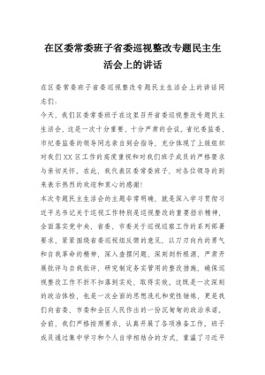 在区委常委班子省委巡视整改专题民主生活会上的讲话