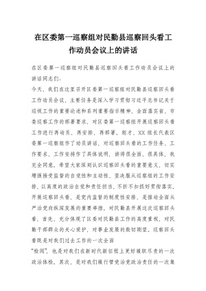 在区委第一巡察组对民勤县巡察回头看工作动员会议上的讲话