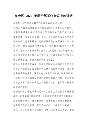 在全区 2026 年老干部工作会议上的讲话