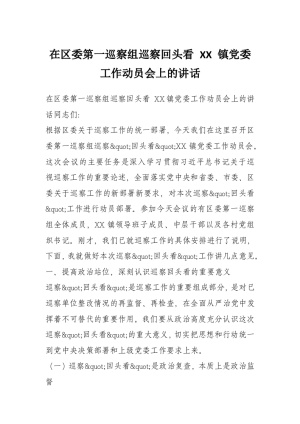 在区委第一巡察组巡察回头看 XX 镇党委工作动员会上的讲话