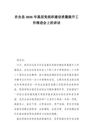在全县2026年基层党组织建设质量提升工作推进会上的讲话