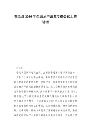 在全县2026年全面从严治党专题会议上的讲话