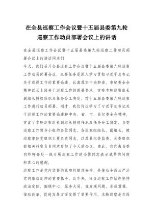 在全县巡察工作会议暨十五届县委第九轮巡察工作动员部署会议上的讲话