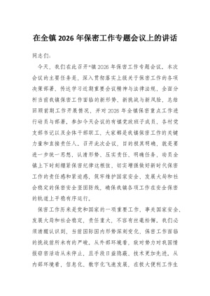 在全镇2026年保密工作专题会议上的讲话