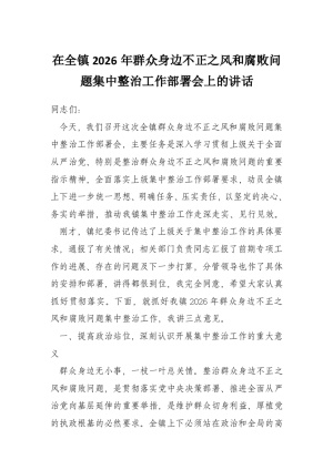 在全镇2026年群众身边不正之风和腐败问题集中整治工作部署会上的讲话