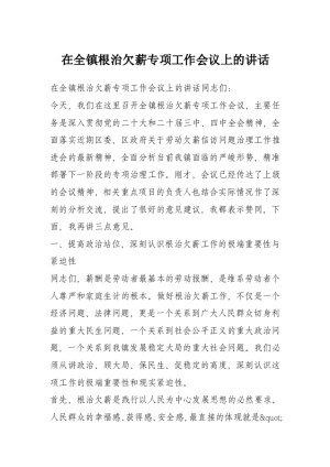 在全镇根治欠薪专项工作会议上的讲话