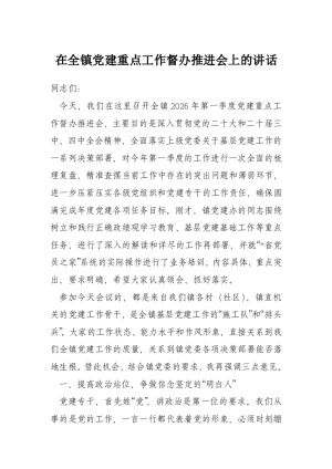 在全镇党建重点工作督办推进会上的讲话