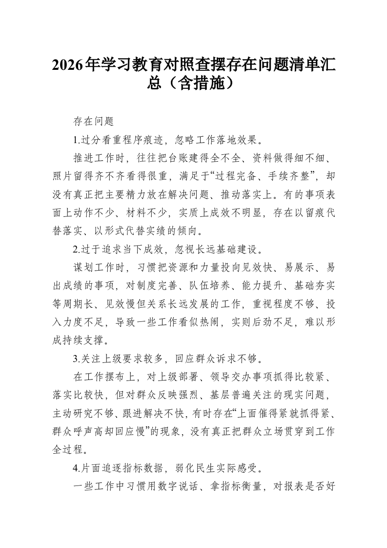 - 2026年学习教育对照查摆存在问题清单汇总(含措施)