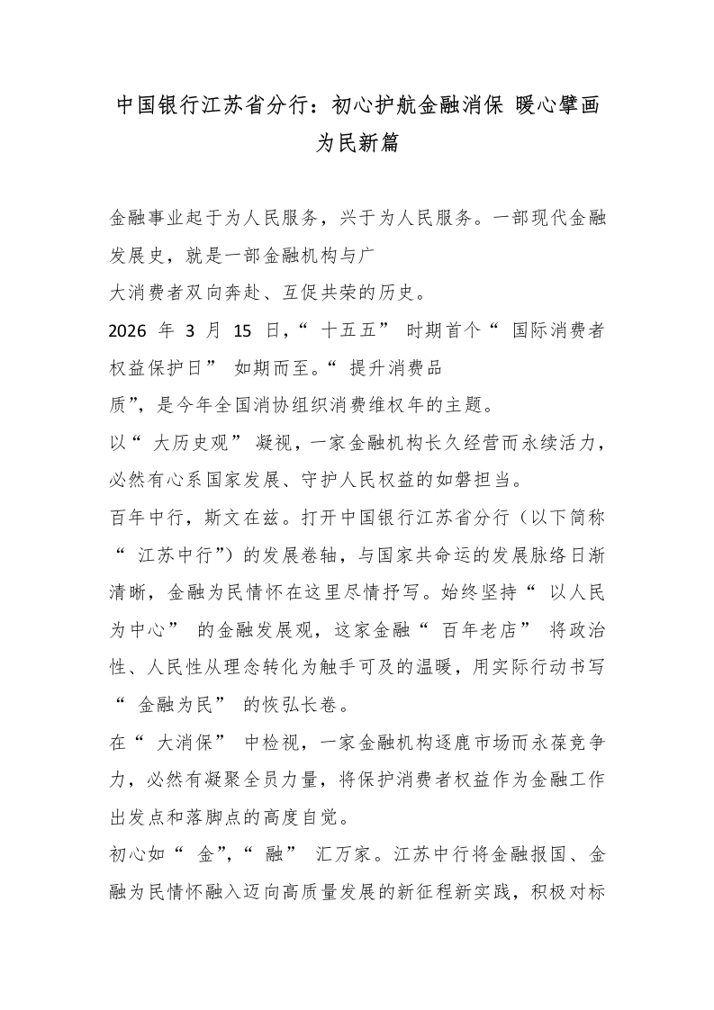 中国银行江苏省分行:初心护航金融消保 暖心擘画为民新篇
