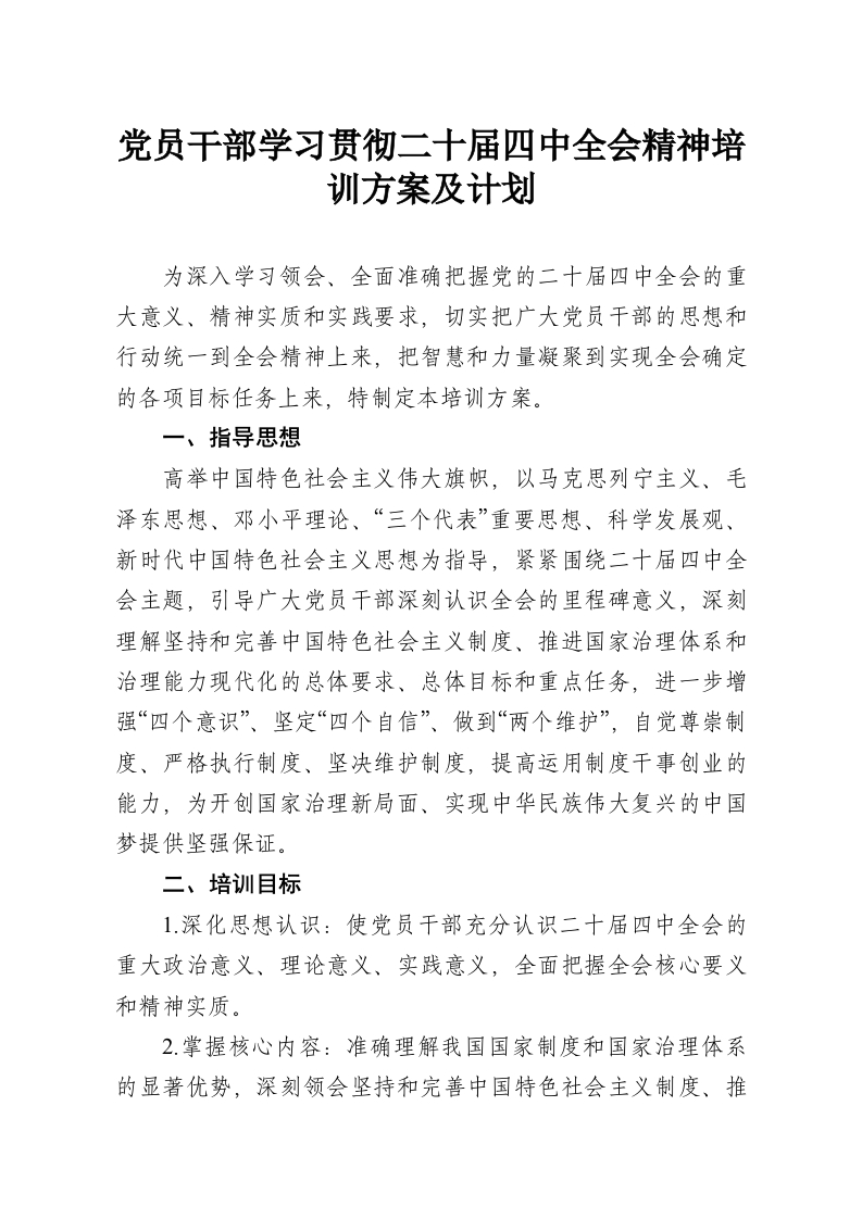 - 二十届四中***党员干部学习培训计划方案