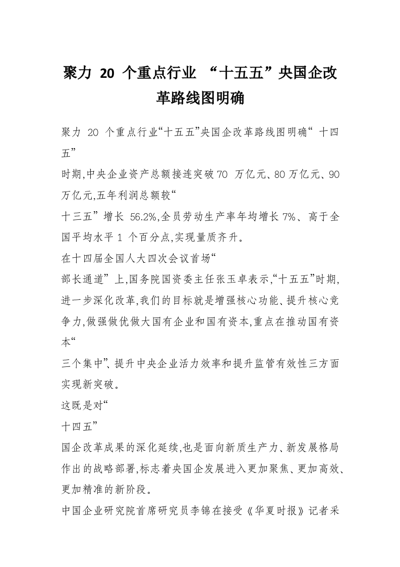 - 聚力20个重点行业“十五五”央国企改革路线图明确