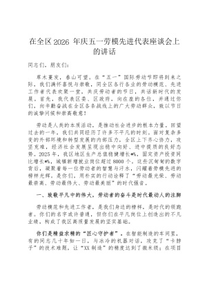 在全区2026年庆“五一”劳模先进代表座谈会上的讲话