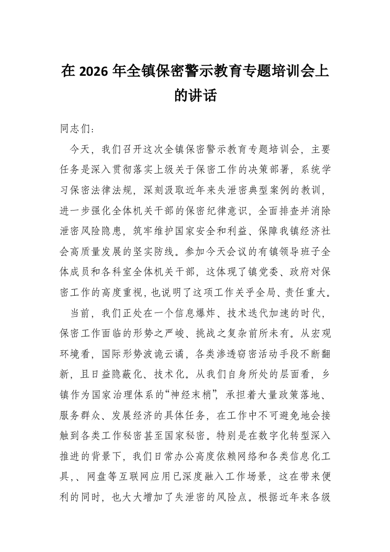 - 在2026年镇党委换届动员部署暨业务培训会上的讲话